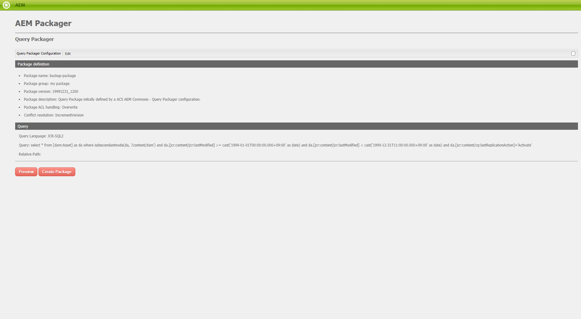 http://localhost:4502/miscadmin#/etc/acs-commons/packagers