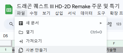 구글시트 바로가기 - 드래곤 퀘스트 III HD-2D Remake 주문 및 특기