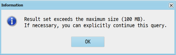 TIP: 추가로 용량을 늘리고 Fatch last page (Alt + End) 버튼을 누르면 중단된 결과 쿼리를 이어서 조회 할 수 있습니다.